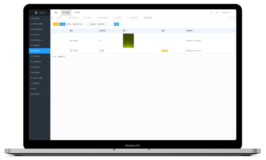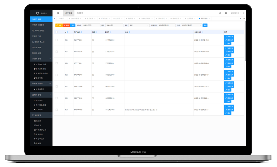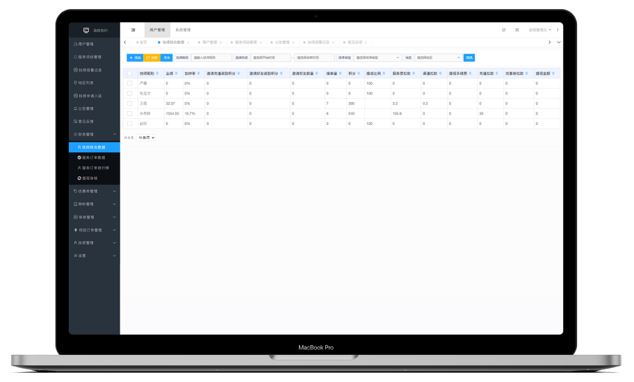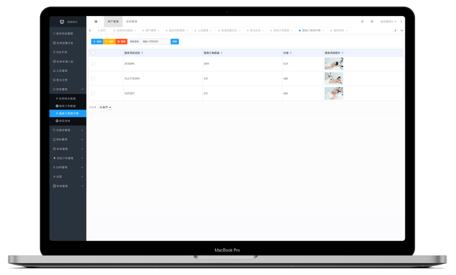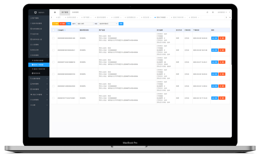 技师、消费者、财务、订单信息,都能一键归结整理,多维度数据分析管理,让商家清楚看到自己的经营状况,更好的进行下一阶段的经营安排。