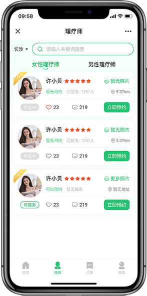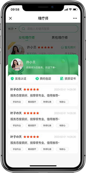 定位功能让消费者可以快速找到自己离自己最近的技师,也可以实时监控技师的位置,保证了技师的安全性,让技师更专心的提供服务。